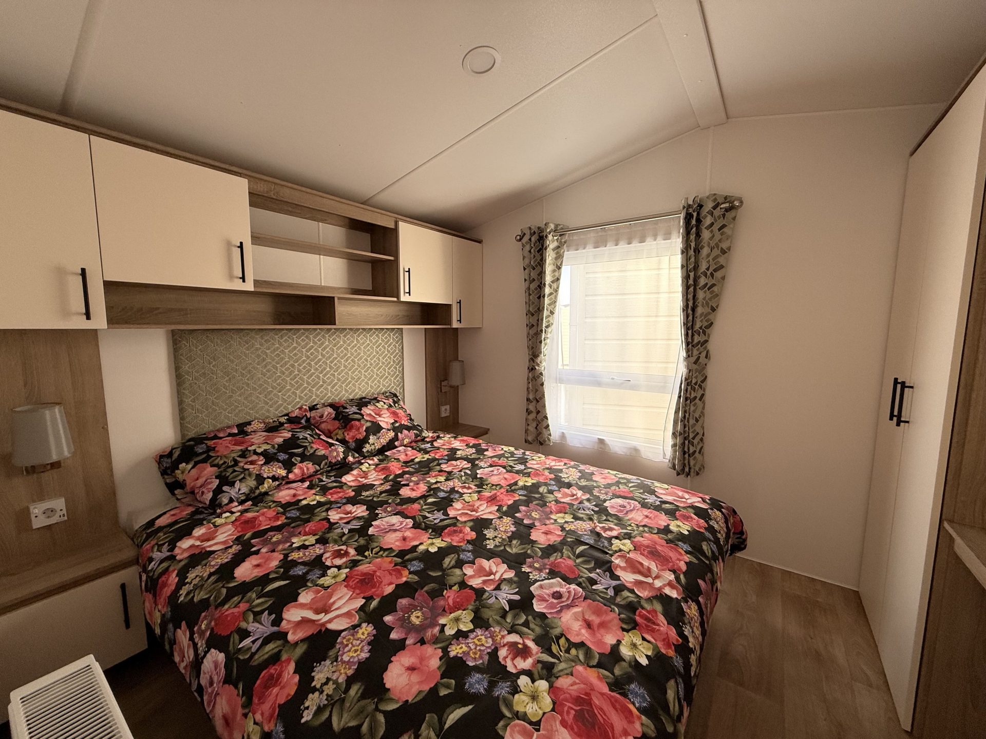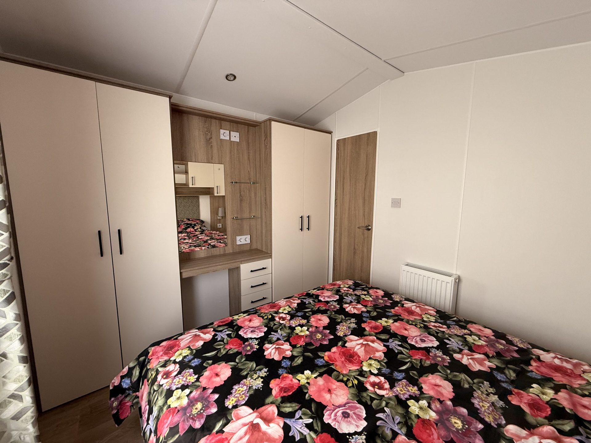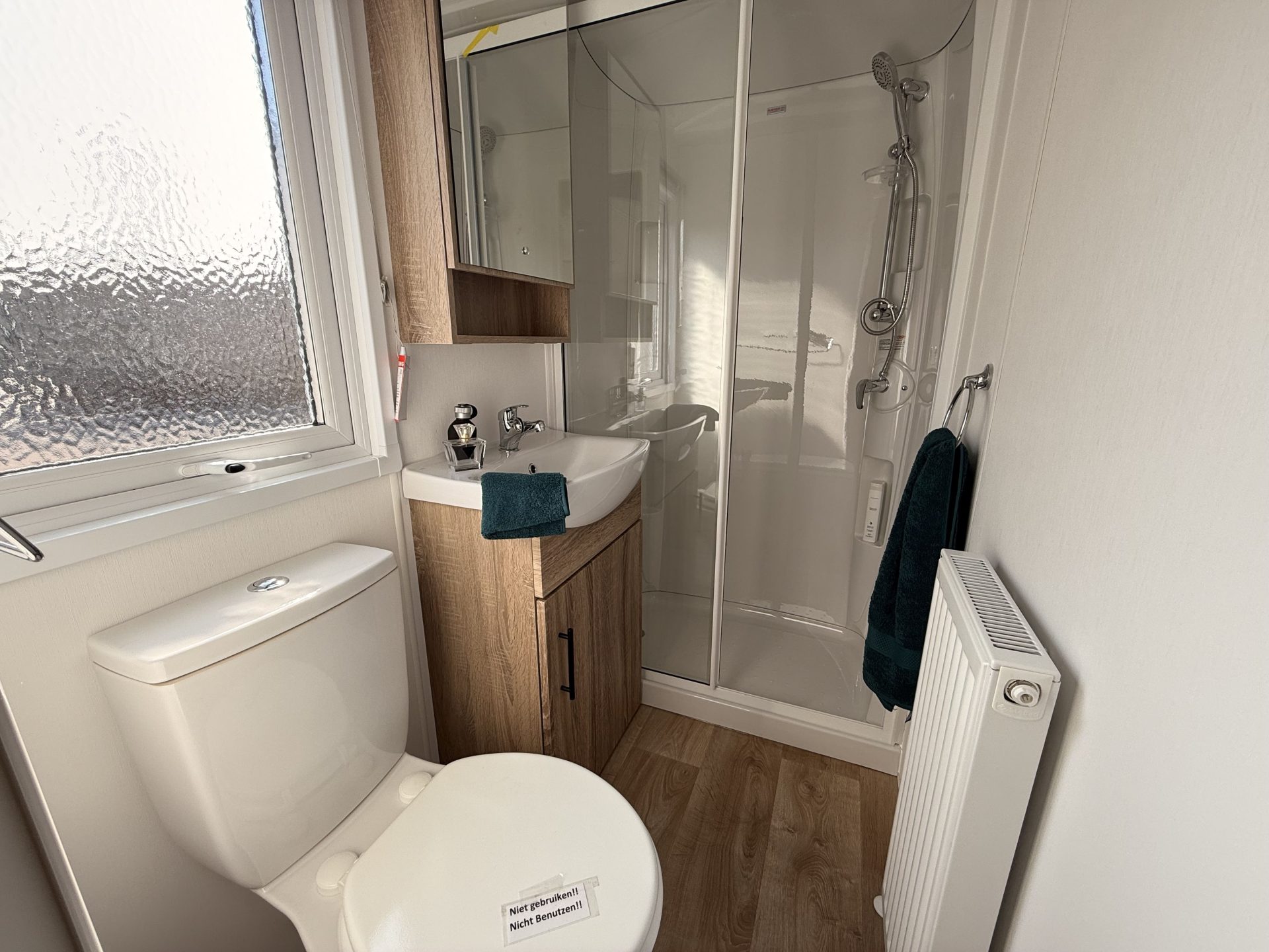 Op bovenstaande afbeeldingen wordt volgend model getoond: 1100 x 385 – 2 slaapkamers. Met toegepaste optie: vaatwasser.