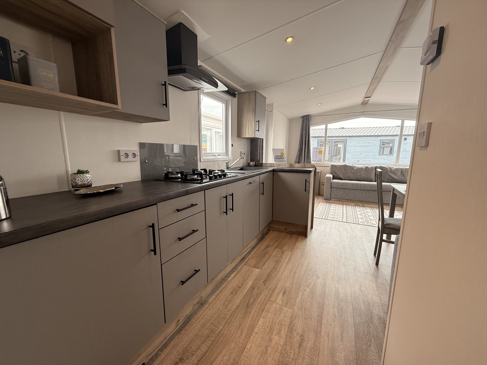 Op de afbeeldingen wordt volgend model getoond: 1100 x 385 – 2 slaapkamers. Met toegepaste optie: vaatwasser.