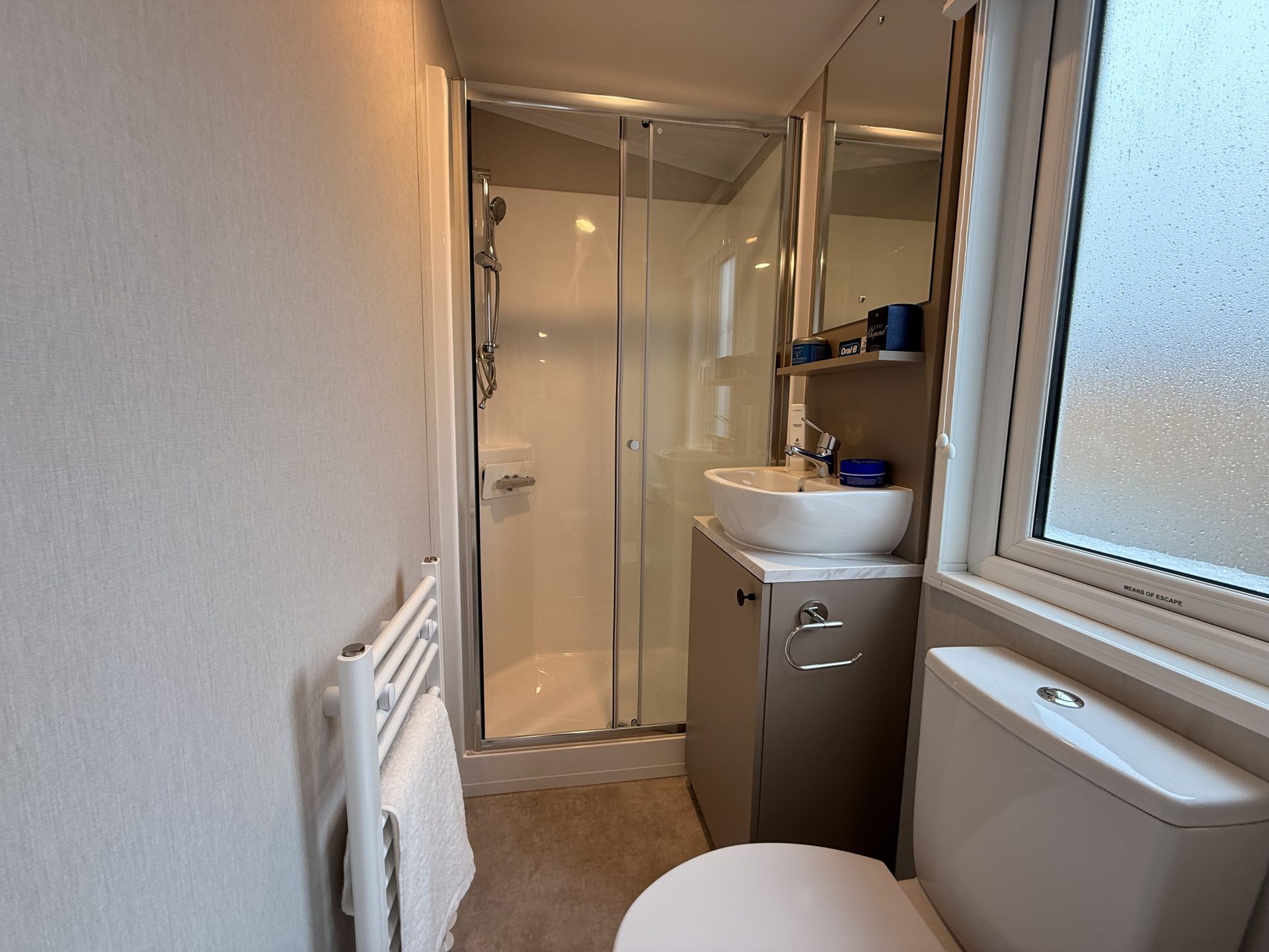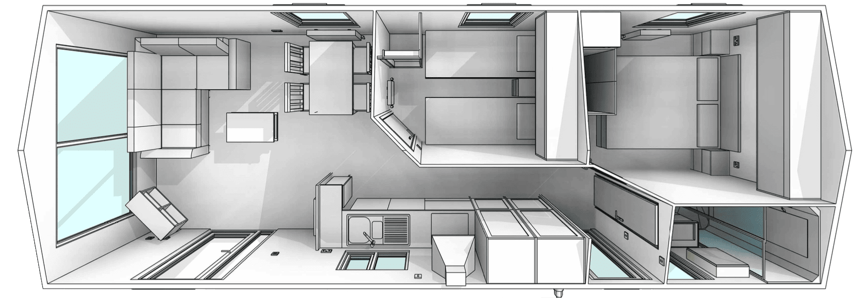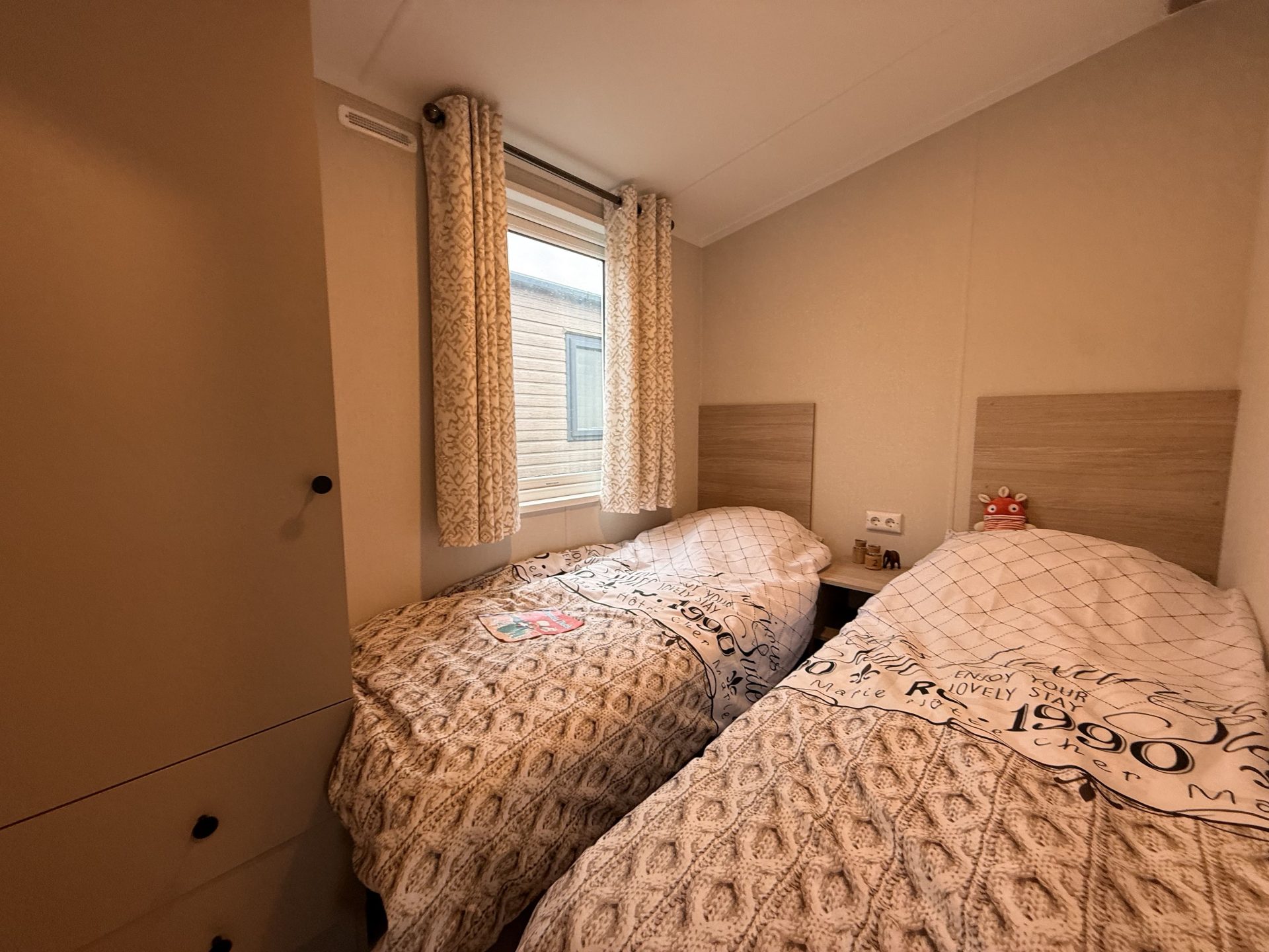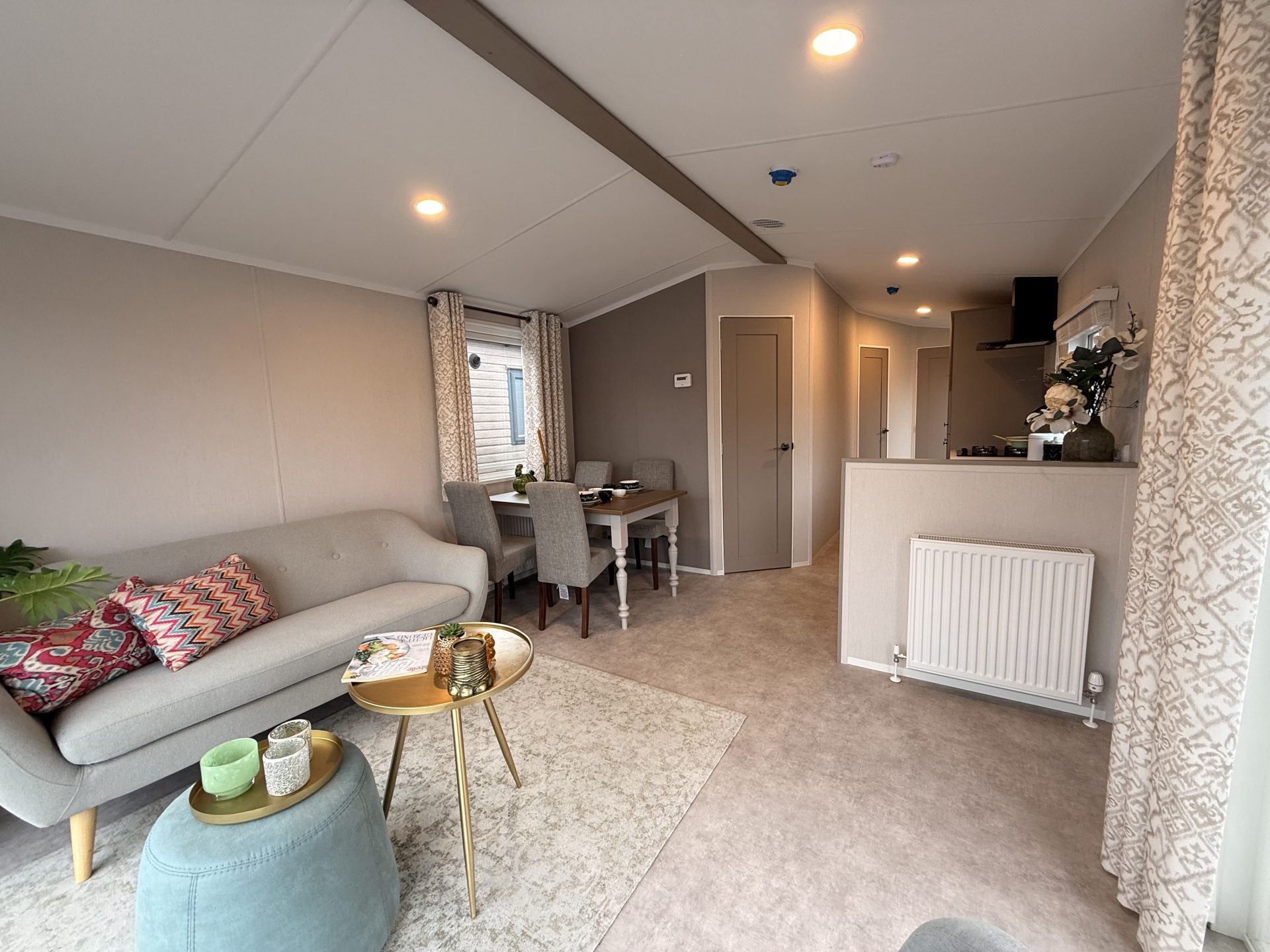 De Stacaravan Ruby biedt een doordacht ontwerp en hoog comfort. De keuken is praktisch ingericht met een geïntegreerde koelkast, vriezer en een 4-pits gasfornuis. De woonkamer voelt licht en ruim dankzij de grote ramen, terrasdeur en biedt een TV-aansluiting. De hoofdslaapkamer beschikt over een comfortabel tweepersoonsbed, ruime kledingkast en verwarming. Daarnaast biedt de tweede slaapkamer twee eenpersoonsbedden en een kledingkast, wat het ideaal maakt voor gasten. De badkamer is modern uitgerust met een douchecabine, toilet, wastafelmeubel en verwarming. De Ruby is volledig afgewerkt en klaar voor gebruik. Een elegante en functionele keuze!