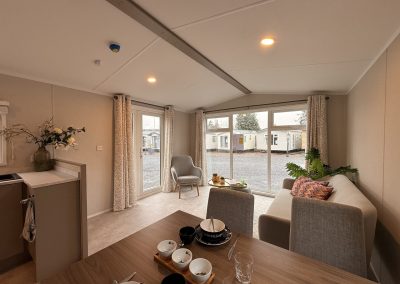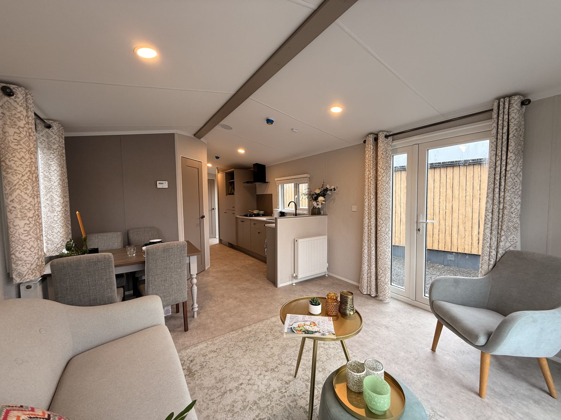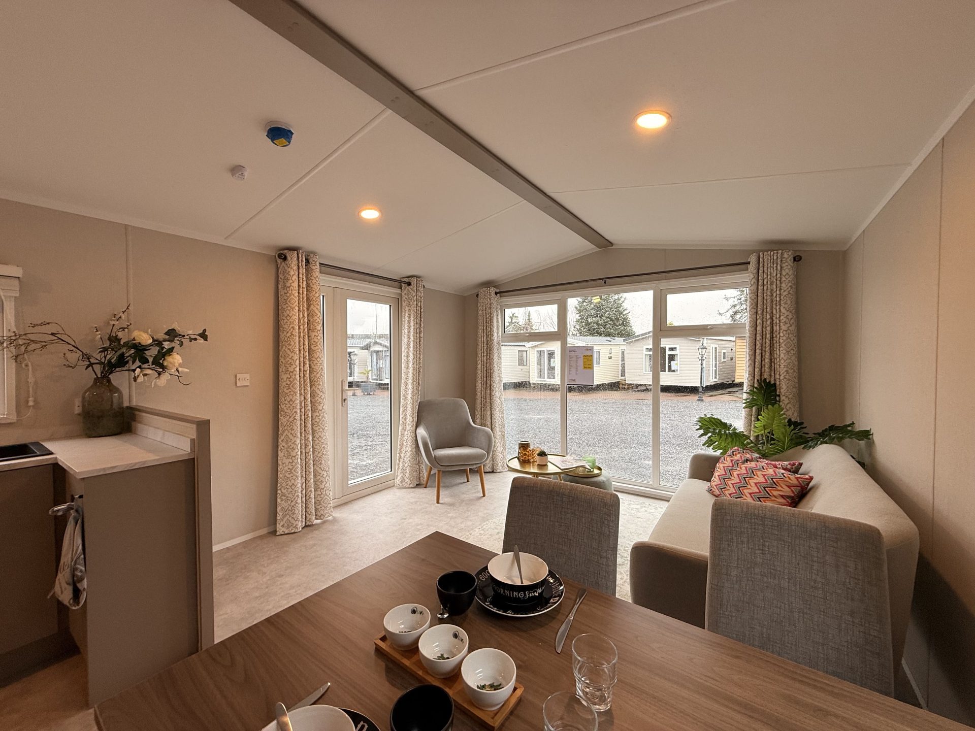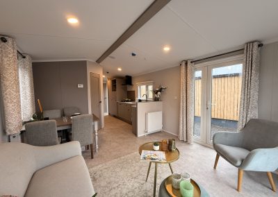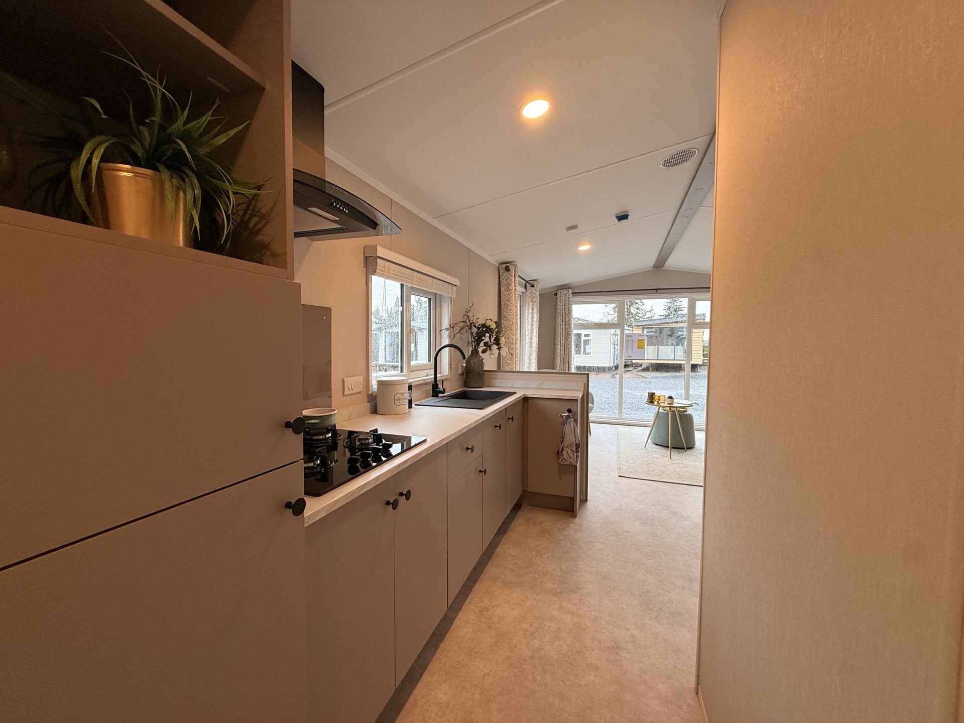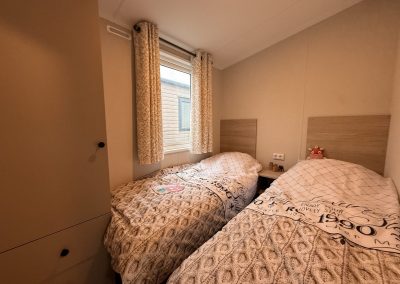 De Stacaravan Ruby biedt een doordacht ontwerp en hoog comfort. De keuken is praktisch ingericht met een geïntegreerde koelkast, vriezer en een 4-pits gasfornuis. De woonkamer voelt licht en ruim dankzij de grote ramen, terrasdeur en biedt een TV-aansluiting. De hoofdslaapkamer beschikt over een comfortabel tweepersoonsbed, ruime kledingkast en verwarming. Daarnaast biedt de tweede slaapkamer twee eenpersoonsbedden en een kledingkast, wat het ideaal maakt voor gasten. De badkamer is modern uitgerust met een douchecabine, toilet, wastafelmeubel en verwarming. De Ruby is volledig afgewerkt en klaar voor gebruik. Een elegante en functionele keuze!